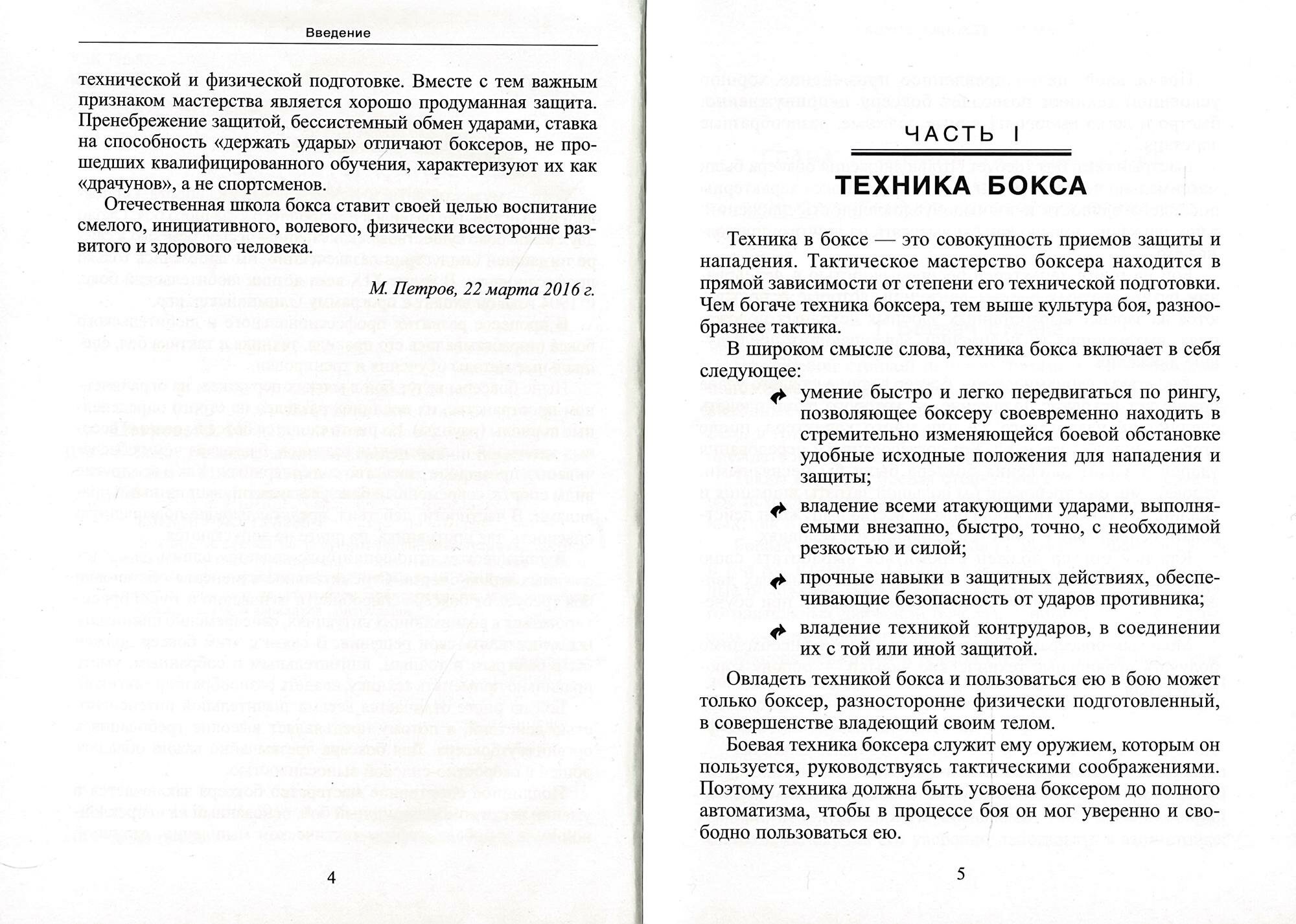 Такое ощущение, что автор взял учебное пособие по обучению боксу, которое было подготовлено в годах эдак 60-х - 70-х прошлого столетия, и просто натянул на него красивую обложку. Картинки маленькие, чёрно-белые, и при взгляде на них понимаешь, что это картинки из прошлого столетия. Стойка, приёмы защиты, описанные в книге, тоже из прошлого столетия: уже никто не применяет отбивки ладонью. Я сам занимался боксом в 90-е годы и нас, уже тогда, никто такому убожеству не учил. К покупке однозначно не рекомендую: самостоятельно обучиться современному боксу по ней не получится, а для уже занимающихся спортсменов полезной информации в ней крайне мало.