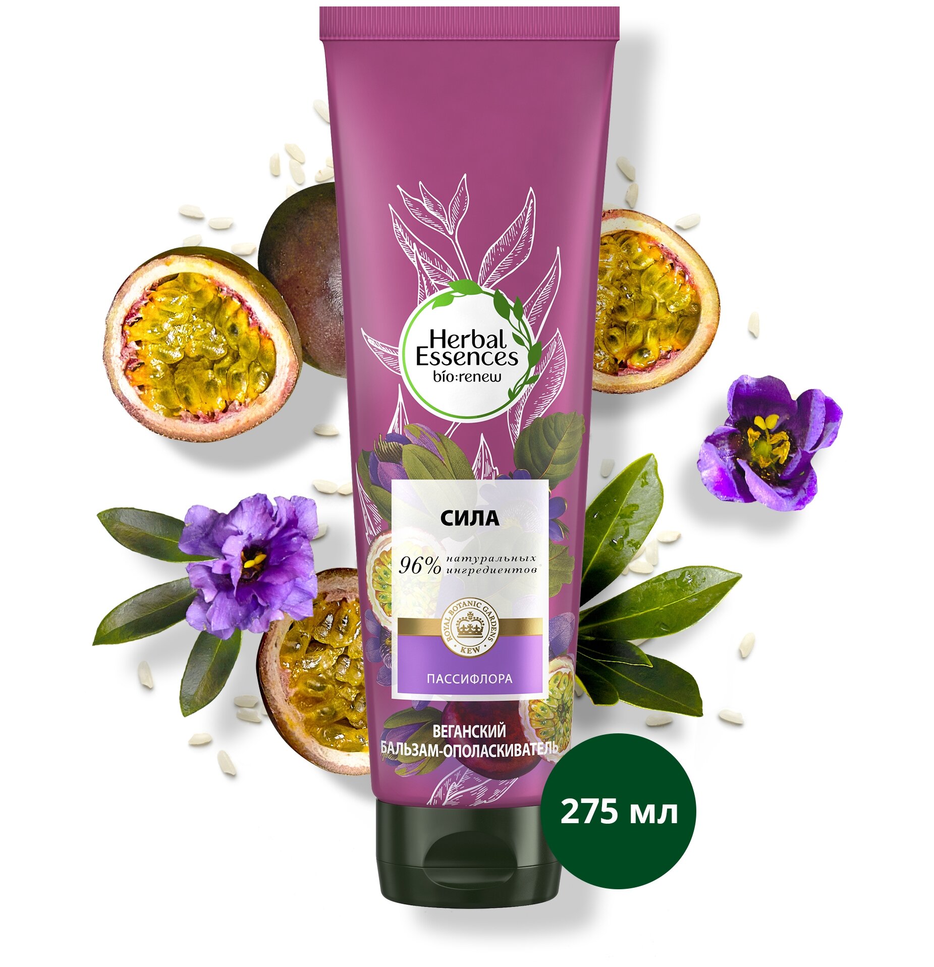 Веганский бальзам-ополаскиватель Herbal Essences (Хербал Эсенсес) Сила из коллекции Пассифлора и Рисовое Молоко для ослабленных и ломких волос. Бальзам-ополаскиватель с активным антиоксидантом укрепляет и питает волосы, наполняя их чарующими ароматами пассифлоры и рисового молока и усиливая их естественную красоту. В результате волосы становятся более живыми, мягкими и блестящими. Бальзам-ополаскиватель на 96% состоит из натуральных ингредиентов (очищенная вода и натуральные ингредиенты, прошедшие ограниченную обработку). Его формула обогащена натуральными сертифицированными пассифлорой и рисовым молоком, а также другими растительными экстрактами, качество которых одобрено Королевским Ботаническим Садом Кью в Лондоне. Не содержит продуктов животного происхождения. Herbal Essences аттестован международной организацией PETA как Cruelty-Free: вся продукция бренда не тестируется на животных. Для наилучшего эффекта используйте совместно с шампунем Сила.