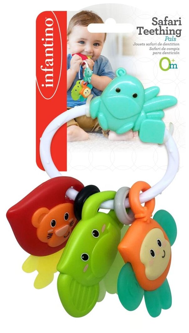 Прорезывание зубов у малышей можно превратить в увлекательнейший процесс, одновременно облегчая неприятные ощущения десен и исследуя диких животных сафари. Успокаивает десны малышей в период прорезывания зубов 3 прорезывателя с разными текстурами и формами Интересный дизайн с жителями сафари: львенок, слоненок, обезьяна, а также забавная птичка-погремушка, сидящая на основании кольца Игрушки легко вращаются Малышу прорезыватель удобно держать в руке благодаря тонкому кольцу-основанию Развивает: мелкую моторику, восприятие цветов Рекомендованный возраст: от 0 мес