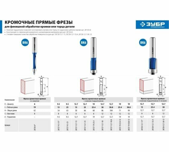 Кромочная фреза ЗУБР Ф12.7мм s8мм i13мм (28728-12.7-13)
