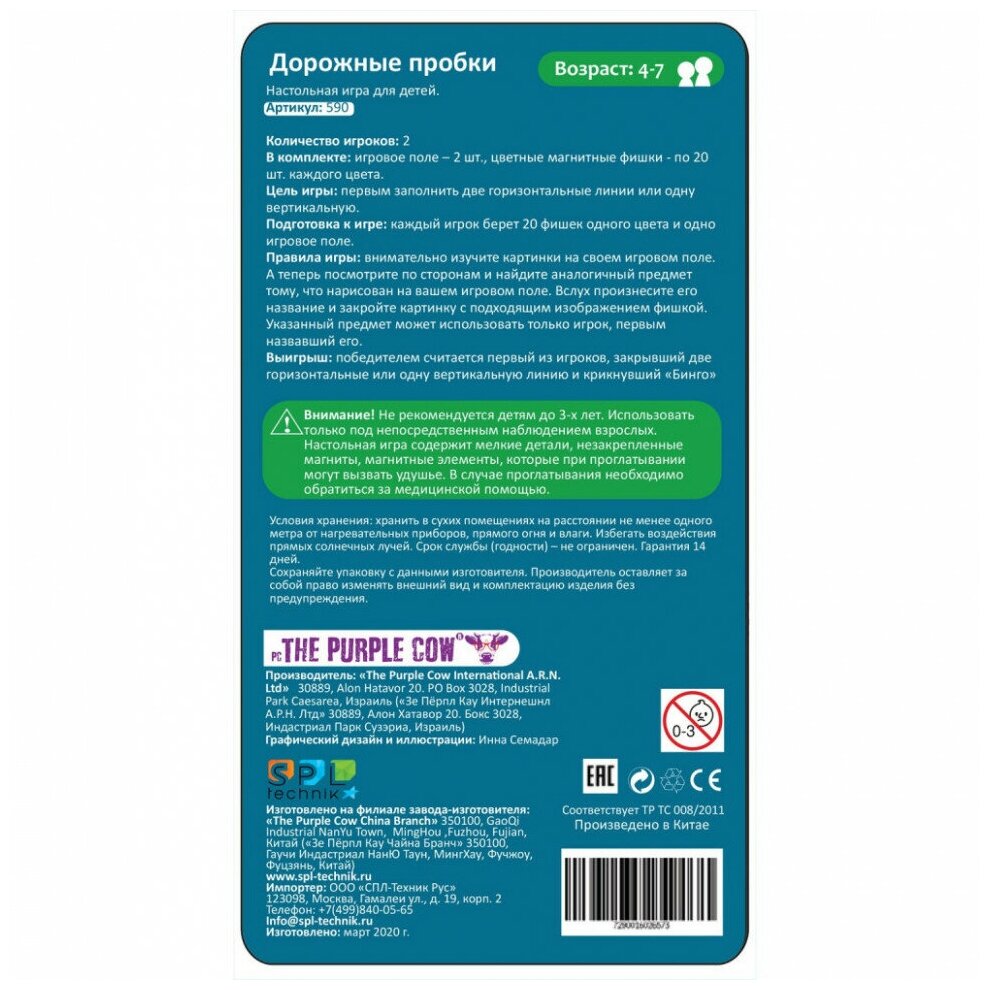 Сервис сравнения цен СкидкаГИД предлагает сравнить цены на товар «Настольная игра The Purple Cow "Дорожные пробки" магнитная (7290016026573)»