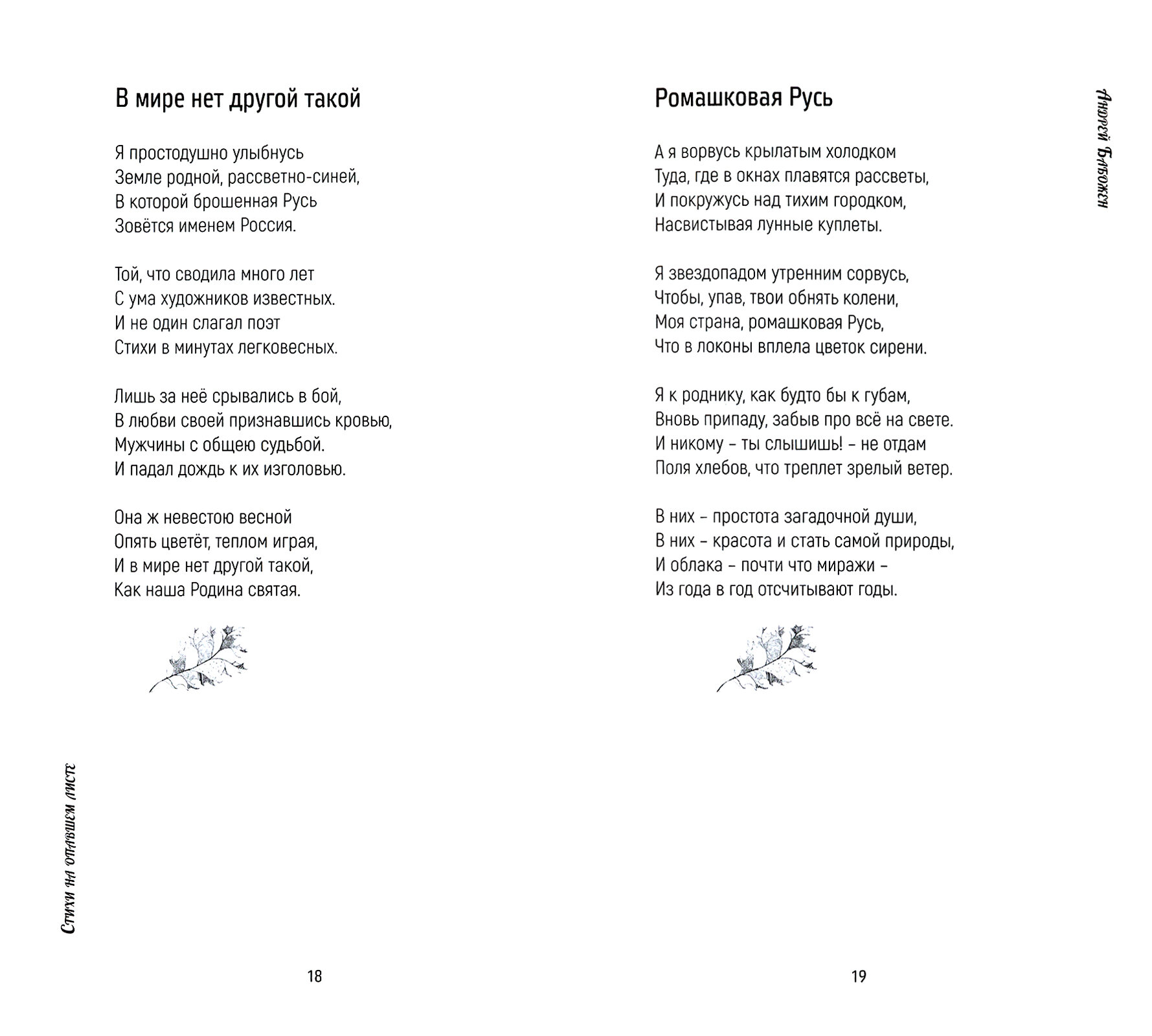Лирика Андрея Бабожена - это лирика Света. В книгу вошли его новые стихотворения, которых не было в ранее вышедших сборниках. Поэтический мир книги наполнен ожиданием нового дня, чуда, веры и надежды. Это раздумья о мире и жизненном пути, признания в любви Родине и женщине. Образ литературного героя автора разный, что делает его поэтический мир многогранным и многообразным.