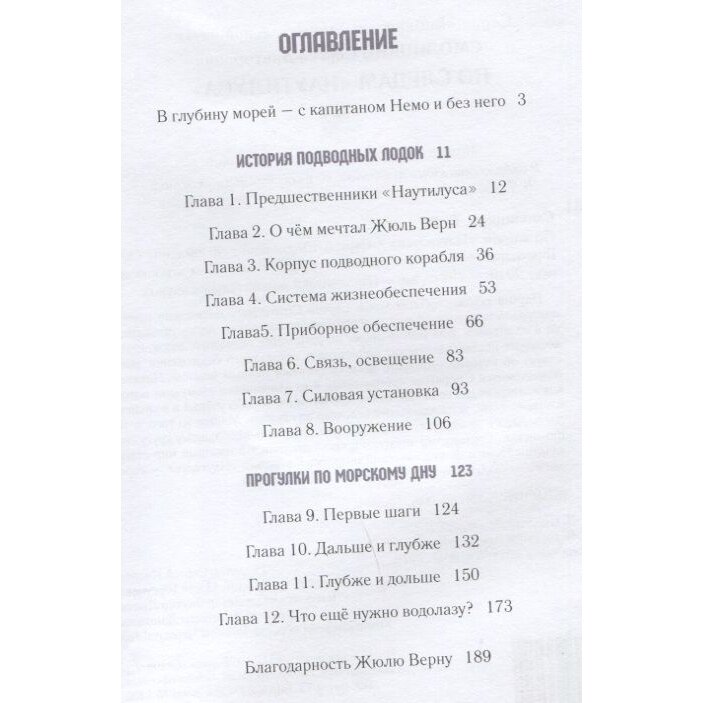 Помимо детального критического разбора жюльверновского "Наутилуса" с позиций современной науки и техники, в книге содержится краткий, но ёмкий курс истории подводных лодок и аппаратов - исследовательского и военного назначения - с седой старины до наших дней (вплоть до новейших достижений в этой области), даётся описание их приборного обеспечения и различных систем, рассказывается об истории водолазного дела и изобретении акваланга, ненавязчиво упоминается и легендарный "Титаник".