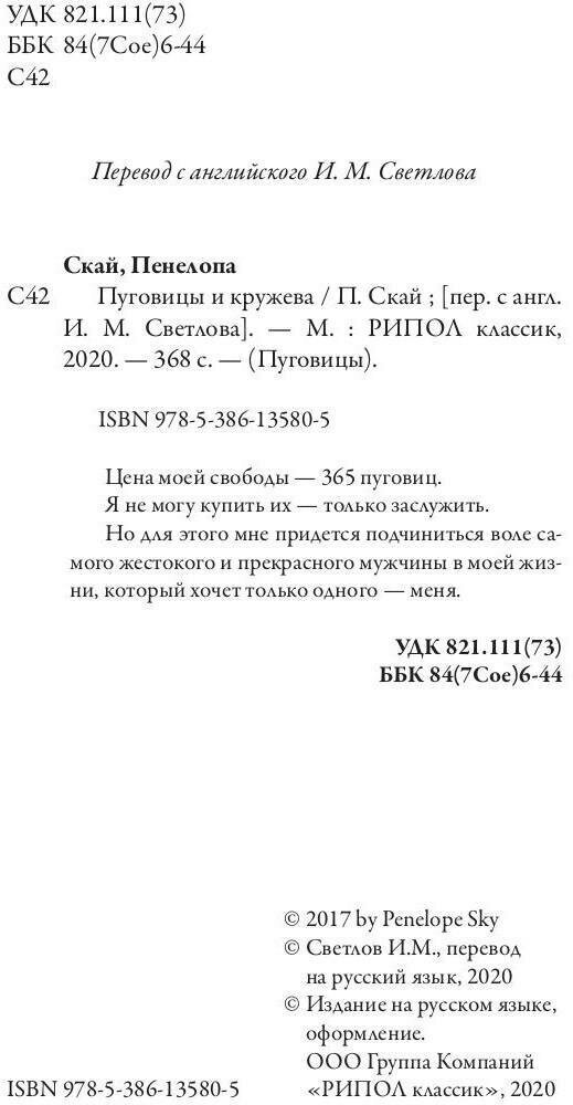 Книга: Пуговицы и кружева (Скай П.); РИПОЛ классик Группа Компаний ООО, 2020