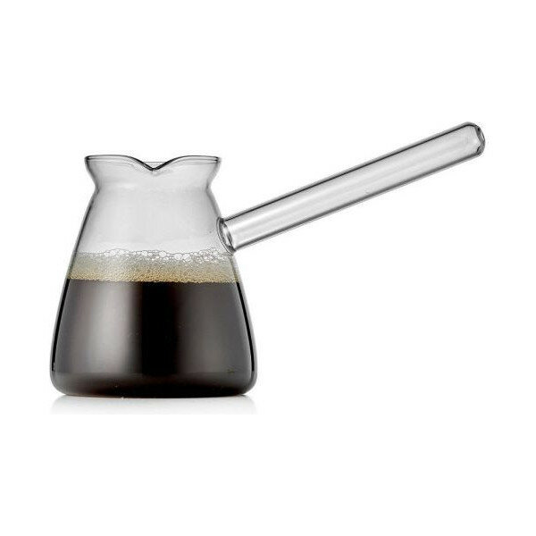 Эта стильная турка позволит вам проследить за процессом заваривания кофе от начала и до конца. Турку можно ставить как на электроплиту, так и на газ. Это возможно благодаря особому составу стекла, из которого сделан корпус. Оно не боится не только нагрева, но и резкого перепада температур: снимая с плиты не бойтесь поставить такую турку на прохладную поверхность. Также турку можно использовать на подставке для подогрева с чайной свечой.Помимо красоты у прозрачного корпуса есть важное преимущество - он позволяет отслеживать процесс закипания, а значит, больше никакого сбежавшего кофе на плите! Эта особенная турка Walmer станет украшением вашей кухни или замечательным подарком друзьям.Классический рецепт кофе в турке.Кофе, сваренный в турке имеет несравненный вкус и отличается густой консистенцией с небольшим количеством частиц кофейной гущи.Рецепт:Для приготовления кофе в турке рекомендуется использовать любые моно сорта кофе, измельченные в пыль, и чистую холодную воду.Для получения крепкого напитка добавьте 8 гр. кофе на каждые 60 мл. воды.Перемешайте до однородной консистенции.Поставьте на плиту. Кофе будет постепенно нагреваться до образования «шоколадной» пенки. Важно: кофе не должен кипеть. Когда пенка достигнет наивысшей точки — снимайте турку с плиты.Кофе готов!