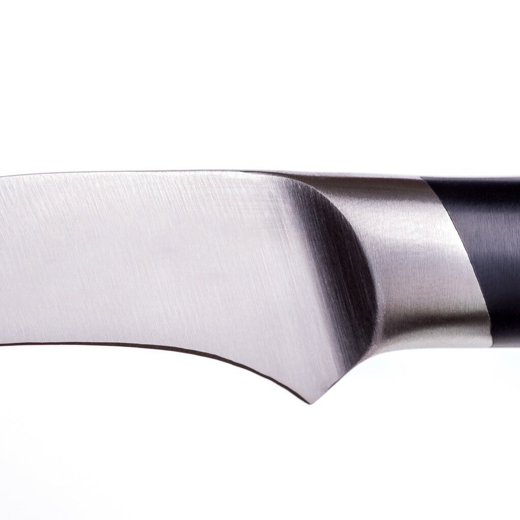 Нож для овощей "Коготок" поможет в работе с мелкими фруктами и овощами. Форма лезвия специально предназначена для легкого удаления кожуры, "глазков" и других дефектов. "Коготок" идеален для создания "вкусных" украшений. В серию HATTORI вошли кухонные ножи из японской стали 420J2. Она была разработана для изделий, эксплуатируемых в условиях повышенной влажности. Эта сталь прочная и износостойкая, закаленная до 53 +/-2 единиц по шкале Роквелла. Каждая модель оснащена больстером из нержавеющей стали равномерно распределяющим нагрузку во время работы. Рукоятка эргономичной формы из АБС пластика прочно зафиксирована тремя болтами. Благодаря матовому покрытию она устойчива к скольжению и обеспечивает безопасную работу. Все элементы ножа подогнаны вручную, что обеспечивает высокий уровень надежности и гигиены. Затачиваемые под оптимальным углом лезвия остаются безупречно острыми. Чтобы продлить срок службы ножа, его следует мыть вручную.