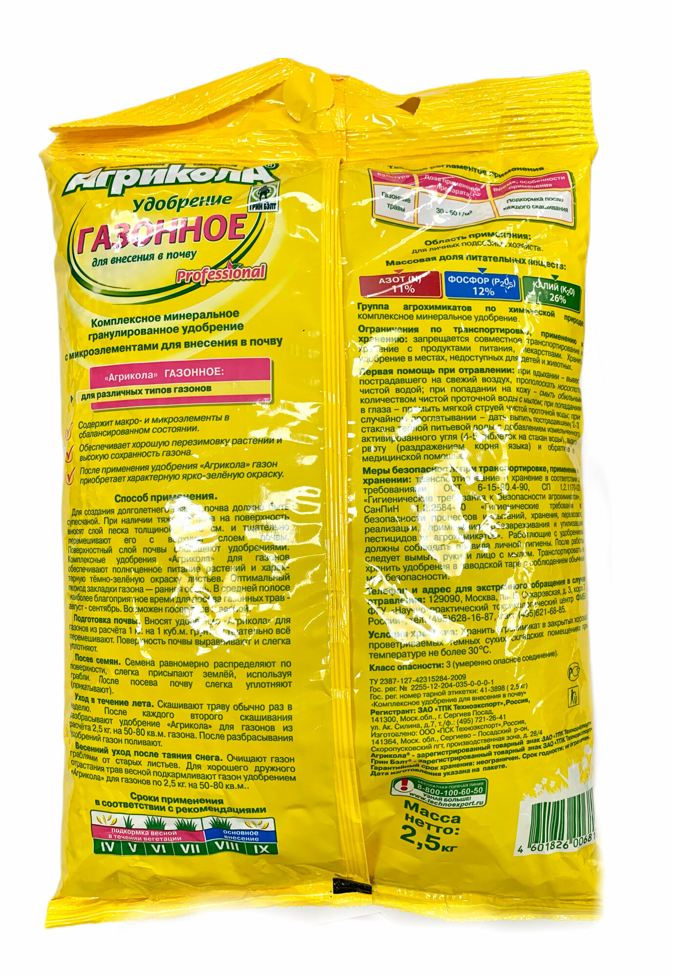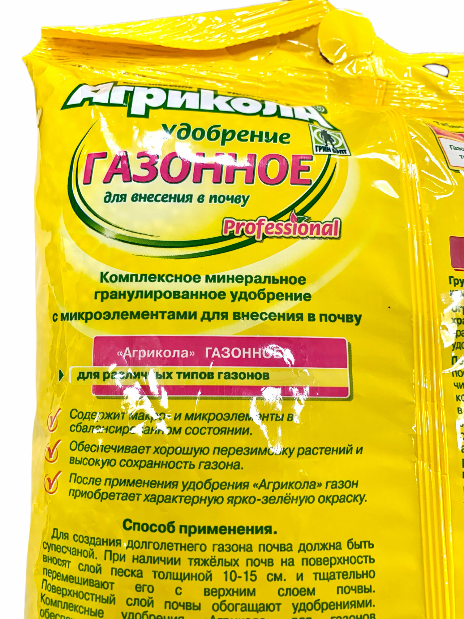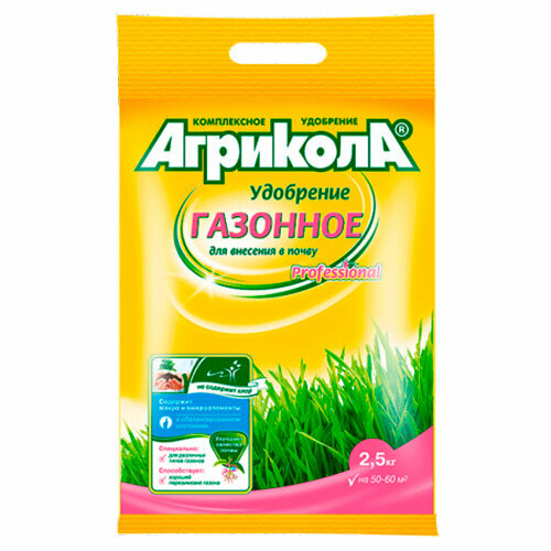 Удобрение Агрикола Газонное 2,5 кг. Содержит макро и микроэлементы в сбалансированном состоянии. Обеспечивает хорошую перезимовку растений и высокую сохранность газона. После применения улбрения "Агрикола" газон приобретает характерную ярко-зеленую окраску.