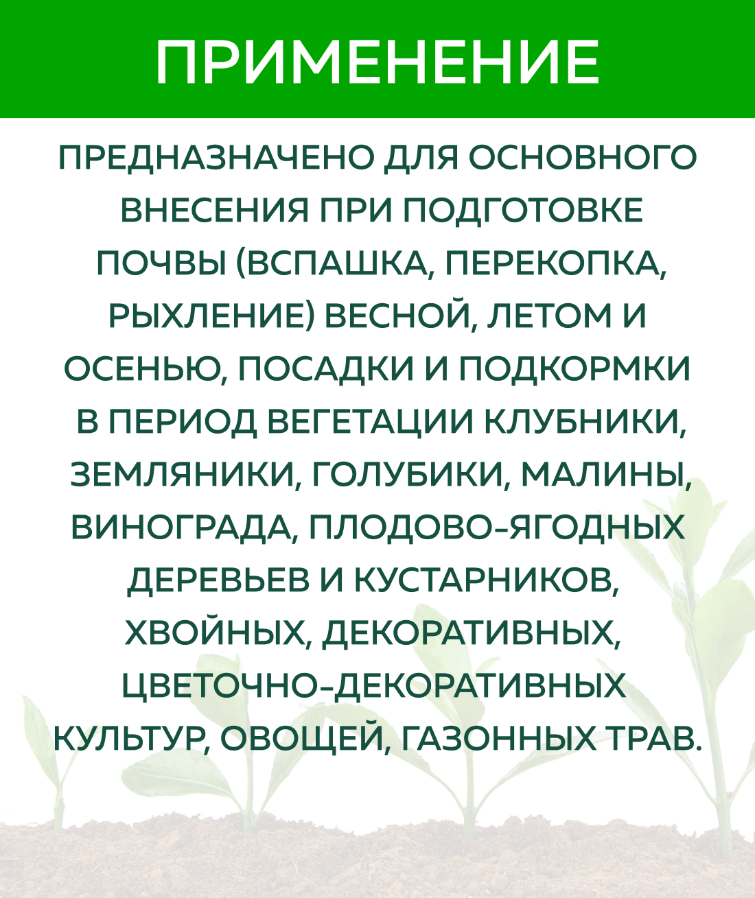 Удобрение универсальное Гера "Калийфос-N" 0,9 кг - комплексное минеральное удобрение (тукосмесь) на основе азотно-фосфорно-калийного удобрения и диатомита. Предназначено для основного внесения и подкормки в период вегетации овощных, плодово-ягодных, цветочно-декоративных культур, всех видов комнатных и декоративных садово-парковых растений в открытом и защищенном грунте. Содержит полный сбалансированный набор элементов питания, необходимых для нормального роста и развития растений.Удобрение способствует ускорению созревания и улучшению качества урожая овощных и плодово-ягодных культур за счет повышения содержания крахмала, сахаров и витаминов и дальнейшему хранению урожая, повышает иммунитет растений, способствует длительному цветению цветочно-декоративных культур, ускоряет формирование и развитие цветков. Содержание питательных веществ, мас.%:азот (N) – 10±1, фосфор (Р2О5) – 12±1, калий (K2O) – 12±