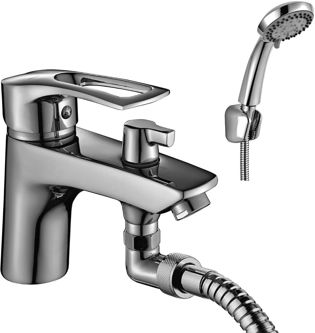 Смеситель Rossinka 40-38 на борт ванны с монолитным изливом. Пластиковый аэратор с функцией легкой очистки, керамический картридж 40 мм, переключатель с керамическими пластинами. Аксессуары в комплекте (шланг 2 м, настенное крепление, 5-функциональная лейка с функцией легкой очистки).