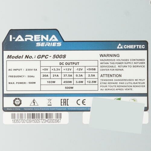 Модель GPC-500S открывает обновленную серию блоков питания CHIEFTEC NEW iArena с гарантированным КПД 80% в любом диапазоне нагрузок. Поставляется только в комплектации ОЕМ (без картонной коробки и кабеля питания), но при этом имеет очень привлекательное соотношение цена / качество, которое высоко оценили многие пользователи во всём мире как в домашнем, так и в корпоративном сегменте. Во всех моделях серии NEW iArena, что представлена мощностями 350…700Вт, используются высококачественные hi-end компоненты, проверенные на надёжность и долговечность, а единая мощная линия +12В позволяет уберечься от перегрузки и обеспечить более стабильное питание системы.