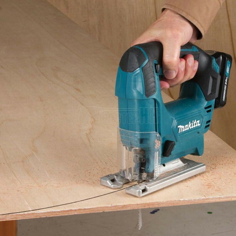 Приобрел данный лобзик взамен старого мощного но кривого китайца. Выбрал данную модель, т.к имелся свободный схт аккумулятор и доверие к маките. Первое что отметил после покупки это высокое качество сборки. Второе, что автономность это очень удобно. Лобзик был необходим для работы по дереву. Мощности хватает за глаза, на это также влияет качество пилок. Большой плюс в работе также литая станина, к тому же есть возможность установки параллельного упора. Станина стоит прочно, а сам лобзик очень хорошо сбалансирован, в сравнении с другими, которые видел, вибрации не ощущается. Еще пару слов по автономности. 2ач аккумулятора для глобальных работ очень мало. Если заниматься выпиливанием в дсп, либо дереве толщиной 20мм, то можно выполнить большой объем работы, но если требуется пилить например кухонную столешницу, аккумулятор тает на глазах. Была необходимость вырезать 2 отверстия под мойку (42×62см)и варочную панель(40×50см) в кухонной столешнице, 2ач полностью заряженного аккумулятора хватило на 3 пропила из 8 необходимых. Благо заряжается полностью за час и был второй аккумулятор.