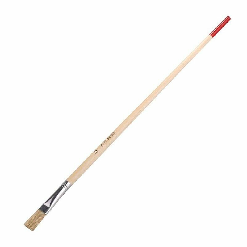 Натуральная щетина обеспечит оптимальное нанесение различных видов ЛКМ, щетина кисти надежно закреплена бандажом из никилированной стали, а наличие легкой деревянной рукоятки обеспечит комфортную работу.