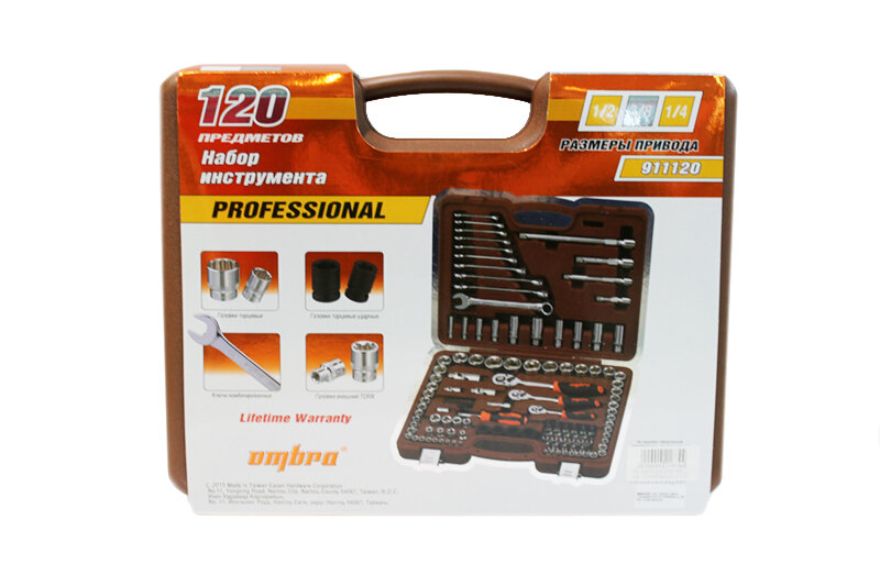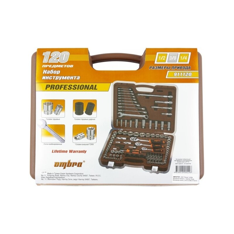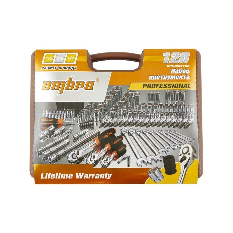 Набор инструментов Ombra 911120 120 предметов (жесткий кейс) 911120 специальный, торцевые головки 1/4", 3/8", 1/2"DR, 4-32 мм и SAE 5/32"--1-