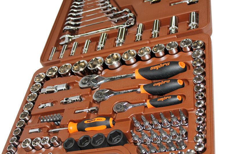 Инструменты, входящие в комплектацию наборов OMBRA, полностью соответствуют требованиям ГОСТа, а также отвечают высоким международным стандартам качества. Оптимальная комплектация наборов, эргономичный, яркий дизайн инструмента и упаковки, высокое качество материалов, используемых при производстве, порадуют самого взыскального потребителя. Область применения: Набор инструмента, комплектация которого рассчитана на производство работ по техническому обслуживанию автомобильной техники в условиях ремонтных мастерских. Инструменты, входящие в состав набора, позволяют обслуживать крепежные детали метрических и дюймовых размеров. Ассортимент дополнен торцевыми головками с рабочим профилем TORX® и головками для механизированного инструмента распространенных размеров.