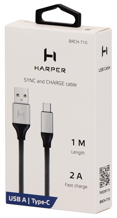 Кабель HARPER BRCH-710 SILVER USB - TYPE C, Длина кабеля: 1м
