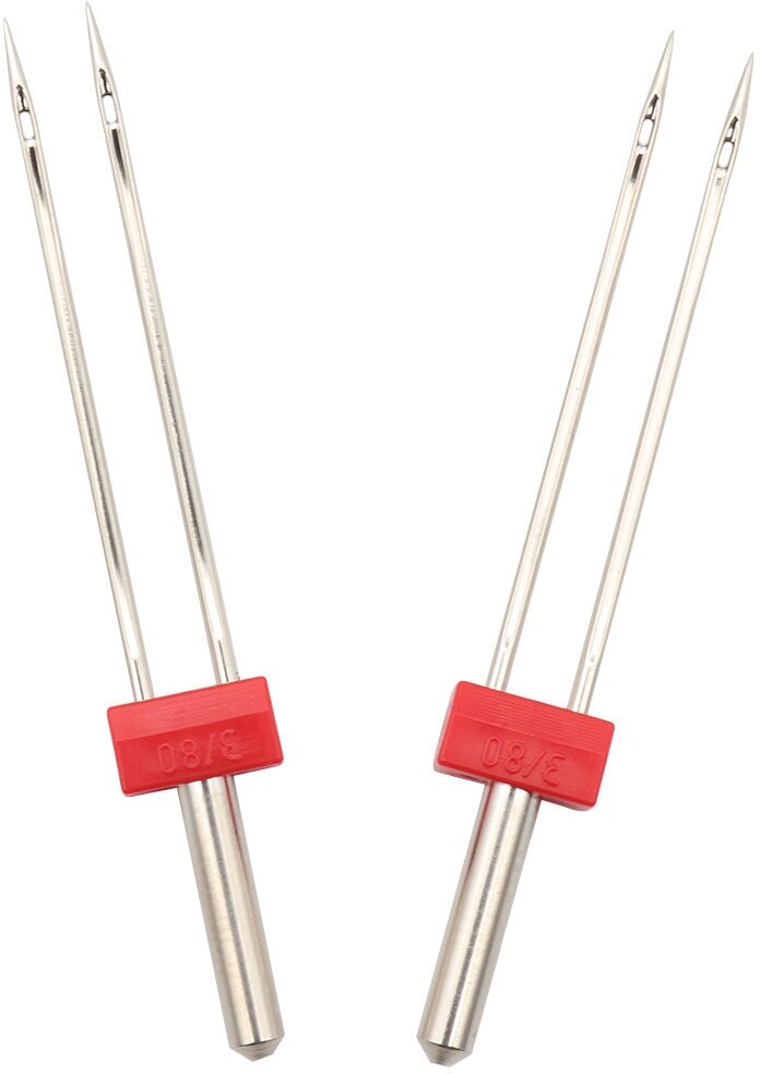 С помощью двойной иглы можно прострочить складки, подшить низ изделия, наложить декоративную контрастную двойную строчку.