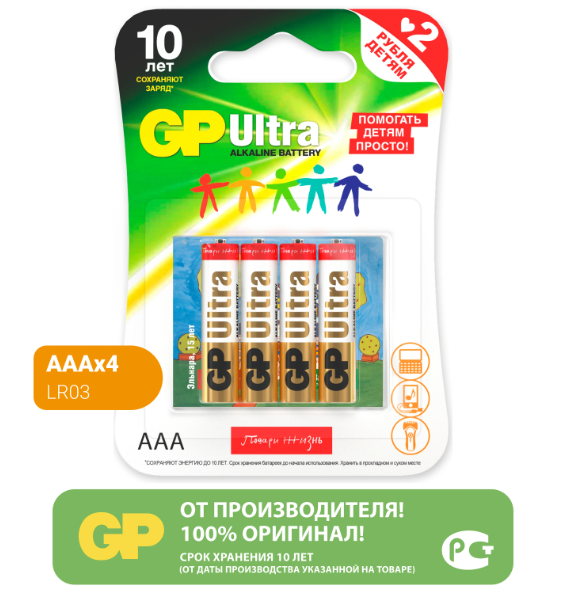 AAA Батарейка GP Ultra Alkaline 24AUGLNEW LR03 4 шт. 24AUGLNEW-2CR4