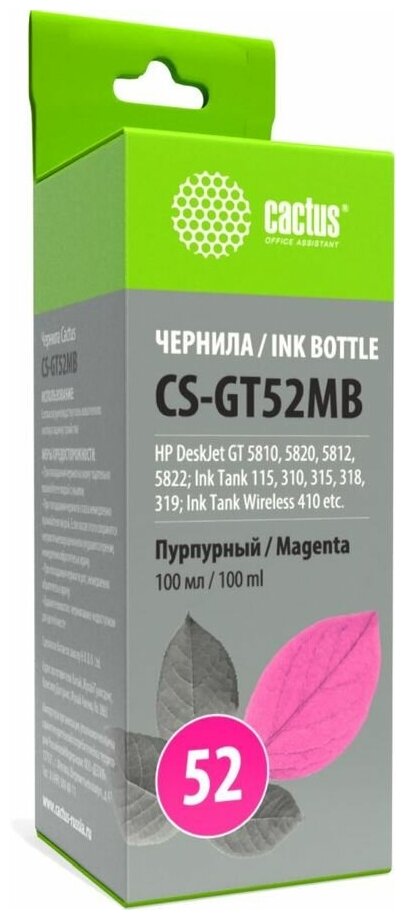 Чернила CACTUS 100мл пурпурный CS-GT52MB