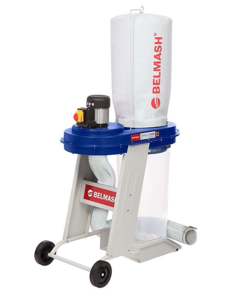 **Вытяжная установка для стружки Belmash DC1200** предназначена для сбора остатков древесины во время работы с деревообрабатывающими станками. Обеспечивает эффективный отвод опилок от рабочей зоны. Оборудована пылесборником, который при необходимости можно заменить на обычный мусорный пакет.