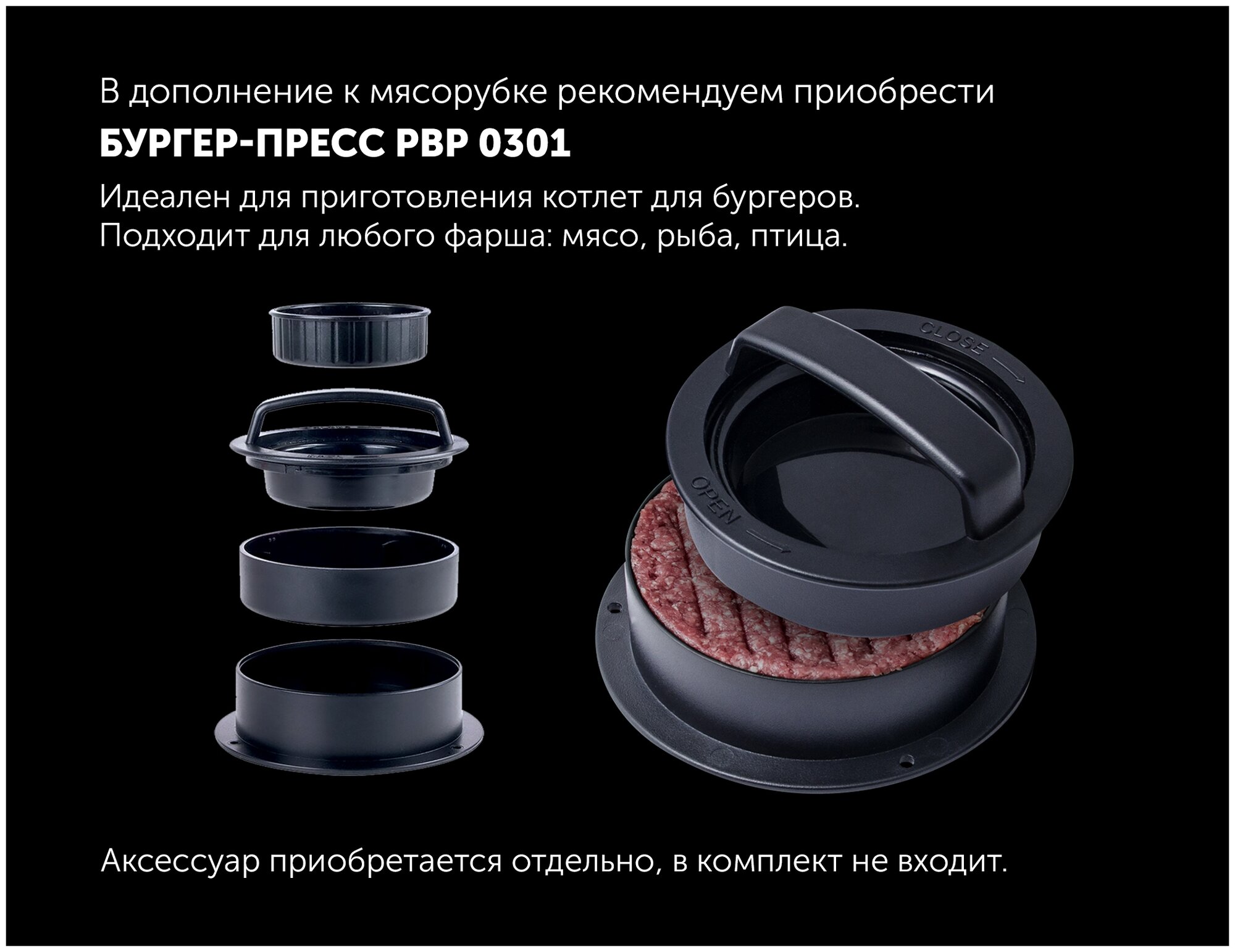 | Диск для фарша | 2 в комплекте, диаметр отверстий 5 мм, 7 мм |