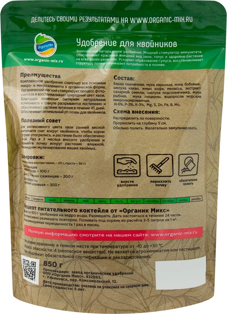 Удобрение для хвойников ОрганикМикс 850 г Органик Микс