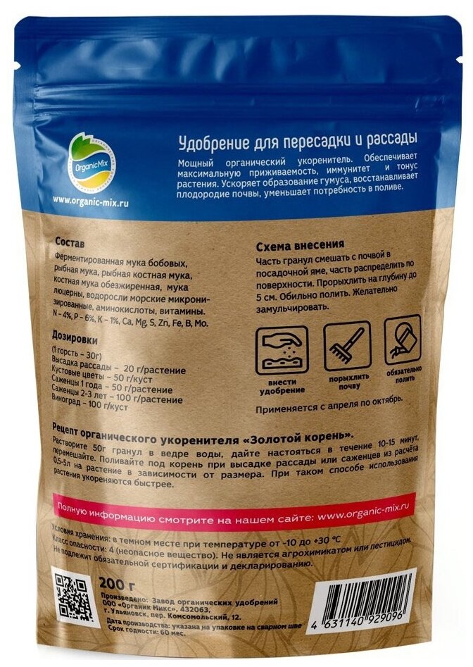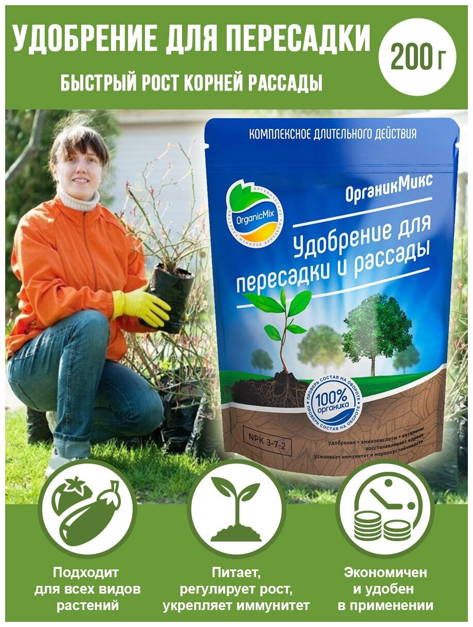 Удобрение для пересадки и рассады ОрганикМикс 200 г Органик Микс 20203