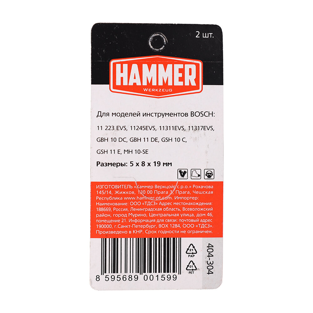 Щетки угольные Hammer RD 404-304 для Bosch (1617000525) 5х8х19 мм, AUTOSTOP, 2 шт