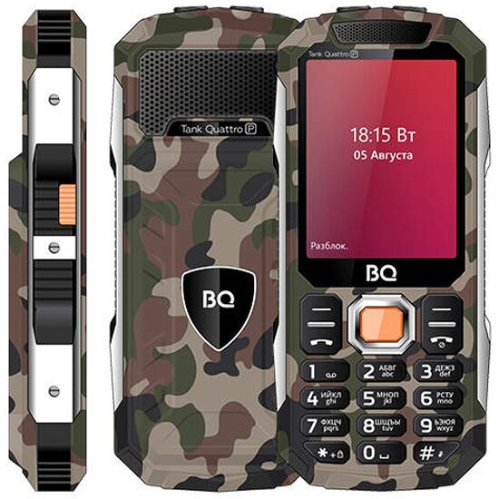 BQ 2817 Tank Quattro Power - кнопочный телефон с 4 SIM-картами!. Прочный усиленный корпус защищает телефон от механических повреждений, что делает его идеальным спутником в путешествиях. Аккумулятор с увеличенной емкостью 5000 мАч обеспечивает долгую автономную работу устройства, благодаря чему вы всегда будете на связи, даже не имея под рукой зарядки. Мобильный телефон также имеет функцию Powerbank, что позволяет заряжать от него сторонние устройства, подключив их с помощью USB-кабеля. Большой TFT -дисплей с диагональю 2,8” выдает яркое и четкое изображение при любых условиях освещенности, что позволяет без труда просмотреть на экране все важные файлы. Дополнительно телефон оборудован слотом для карты памяти MicroSD до 32 ГБ, Bluetooth, FM-радио, громким динамиком и двумя сильными фонариками.