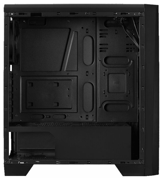 Корпус имеет удобное размещение блока питания снизу, что обеспечивает более эффективное охлаждение и бесшумную работу вашего компьютера. Толщина стенок корпуса составляет всего 0.5 мм, что делает его легким и прочным в использовании. Корпус также оснащен двумя внутренними отсеками для 3,5-дюймовых накопителей, что обеспечивает достаточно места для хранения данных.