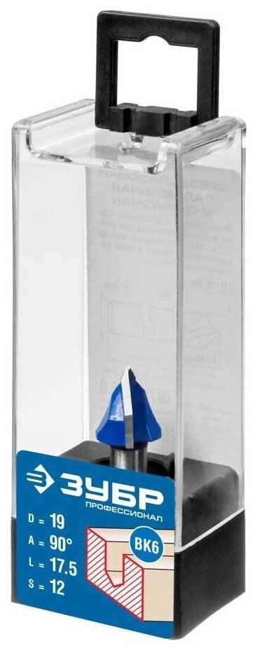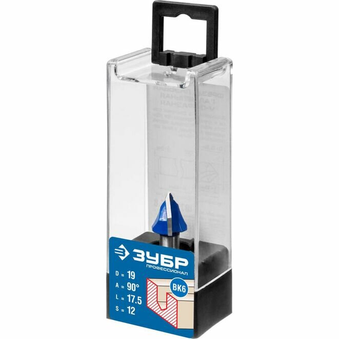 Фреза пазовая галтельная V-образная, D= 19мм, рабочая длина-17,5мм, угол-90° градусов, хв.-12 мм, ЗУБР Профессионал