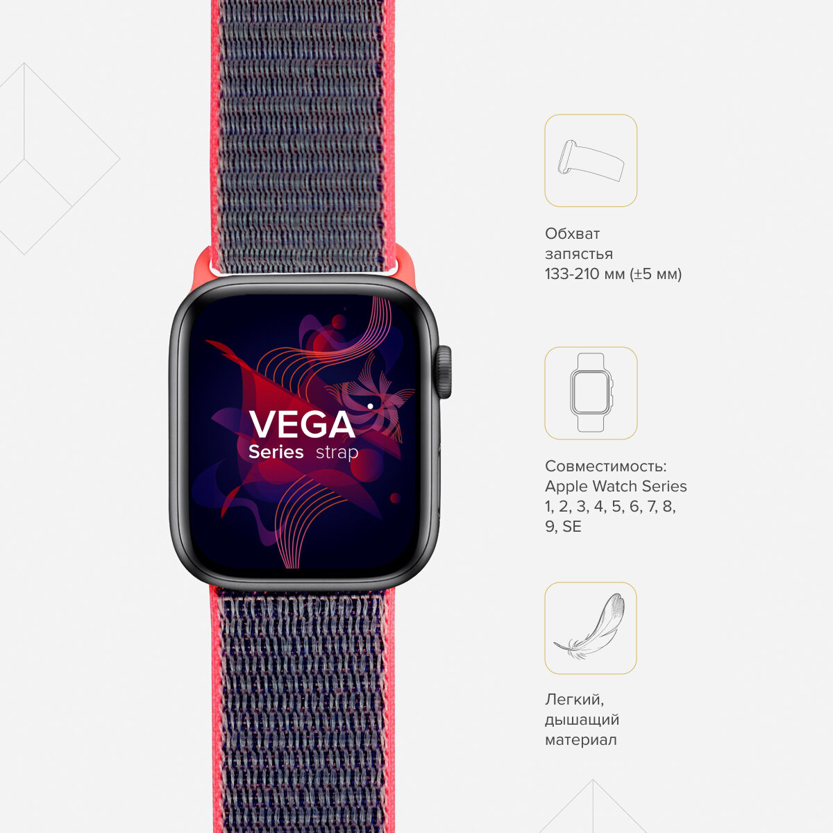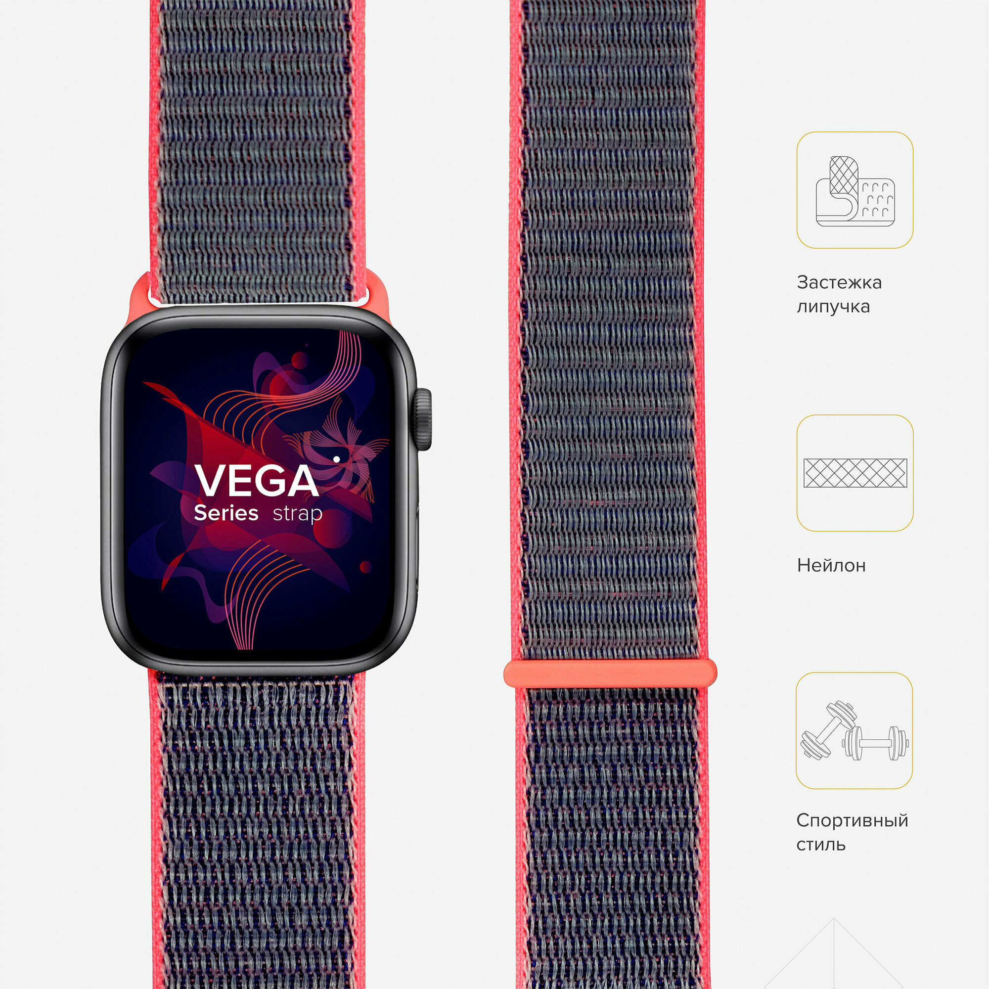 Легкий и удобный ремешок серии Vega из двухслойного нейлона с удобным креплением на застежке-липучке. Отлично выводит влагу, благодаря чему может использоваться в активных занятиях спортом.