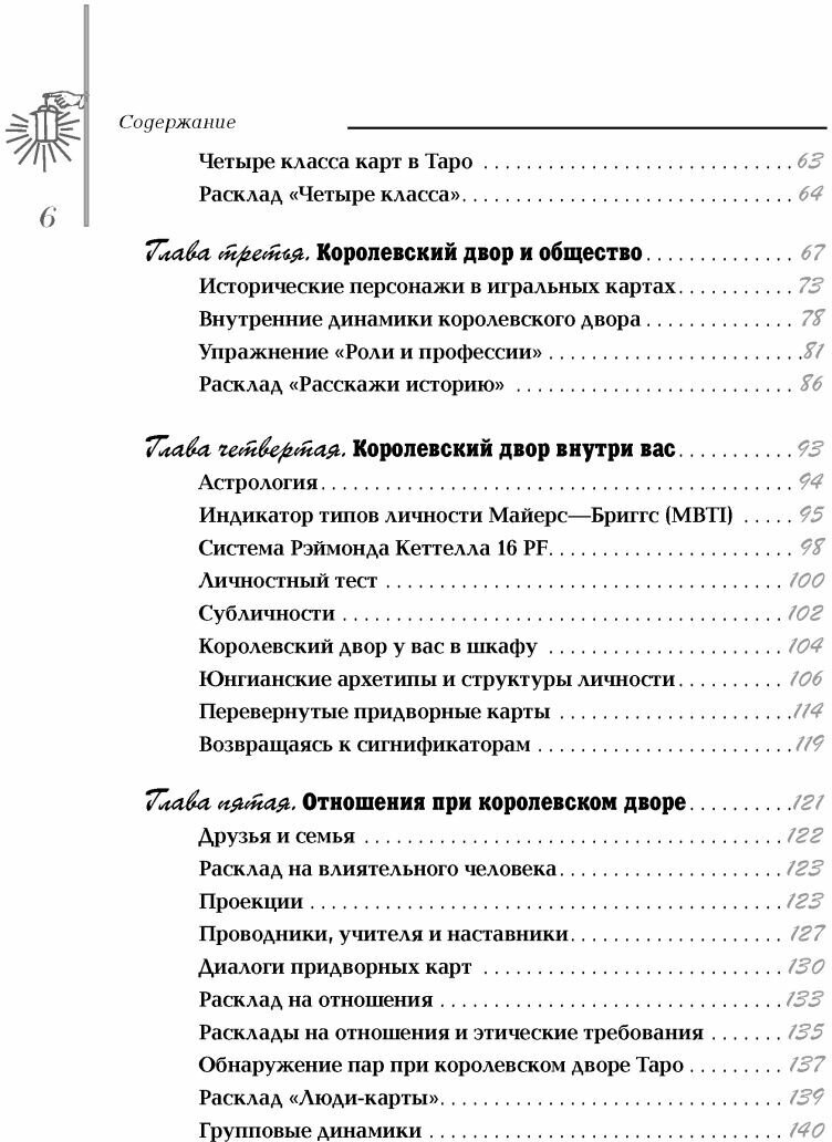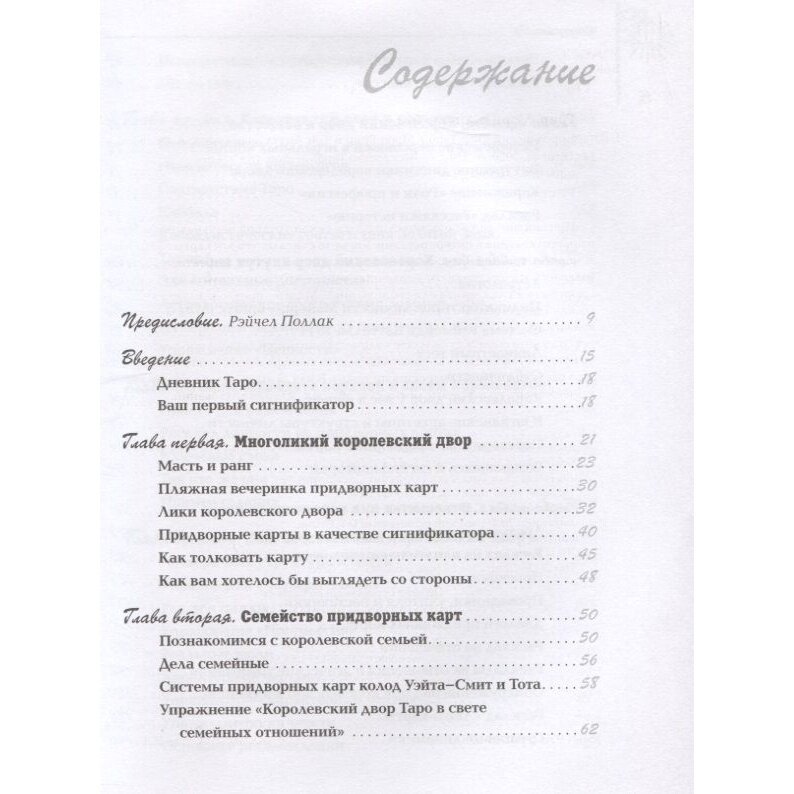 Придворные карты обычно считаются самой трудной частью колоды Таро в плане толкования и интерпретации. Когда-то считали, что они обозначают конкретных людей. Однако авторы полагают, что самый эффективный способ толковать эти шестнадцать загадочных карт - воспринимать их как разные грани личности кверента или его знакомых. Многие предложенные в книге методики сформировались под влиянием современных психотерапевтических направлений.