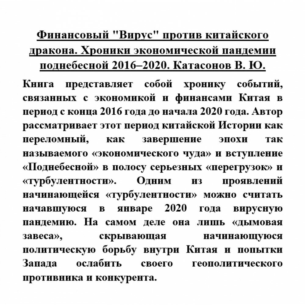 Финансовый «вирус» против китайского дракона. Хроники экономической пандемии Поднебесной 2016-2020 (Валентин Юрьевич Катасонов); Кислород, 2020