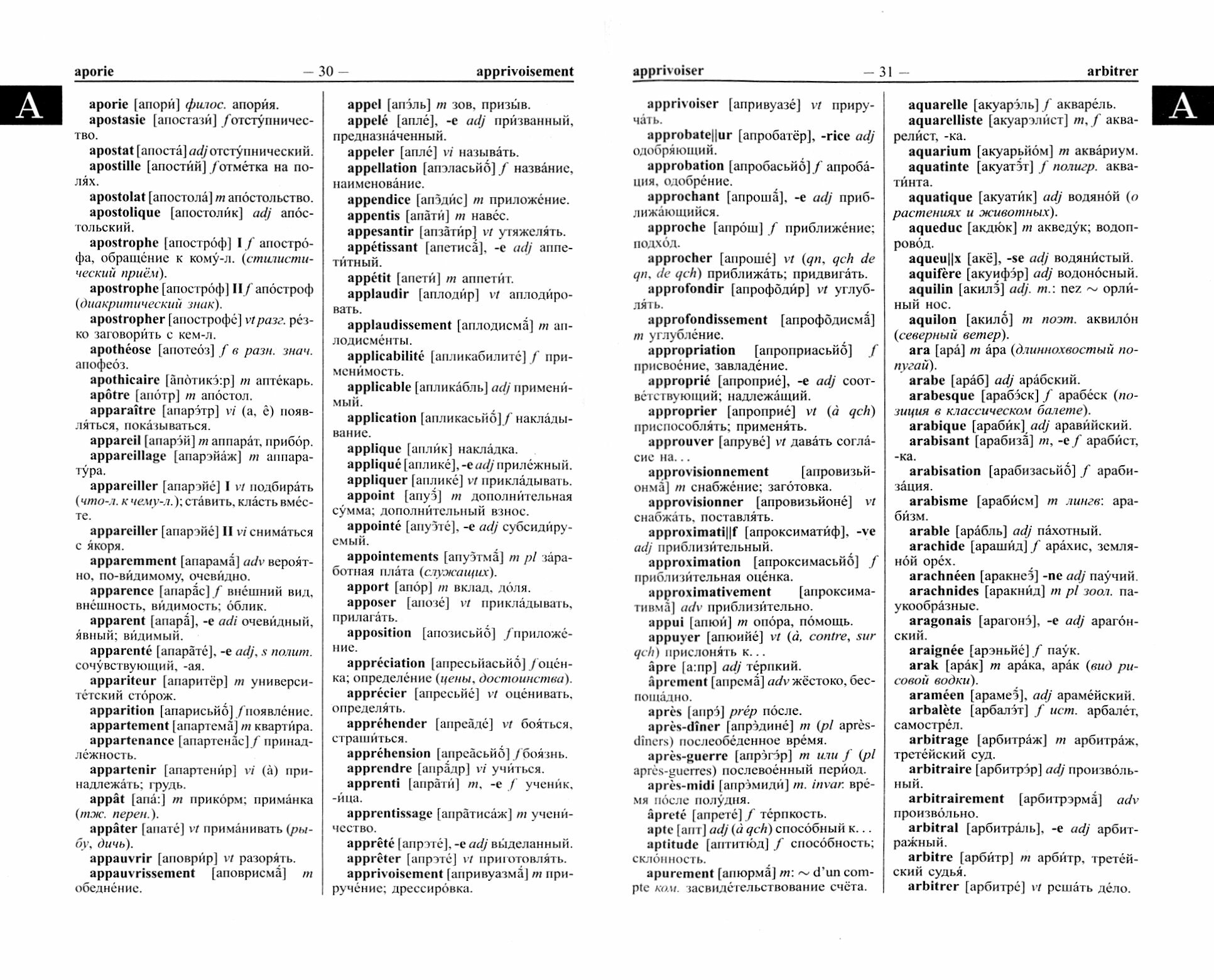 Хороший словарь, полностью отвечает своей цели. Присутствует транскрипция в обоих частях словаря (и фр-рус, и рус - фр.). Обложка твердая, страницы газетные. На краях страниц присутствуют метки с алфавитом, а в начале словаря есть рекомендации по практической транскрипции, что очень удобно)