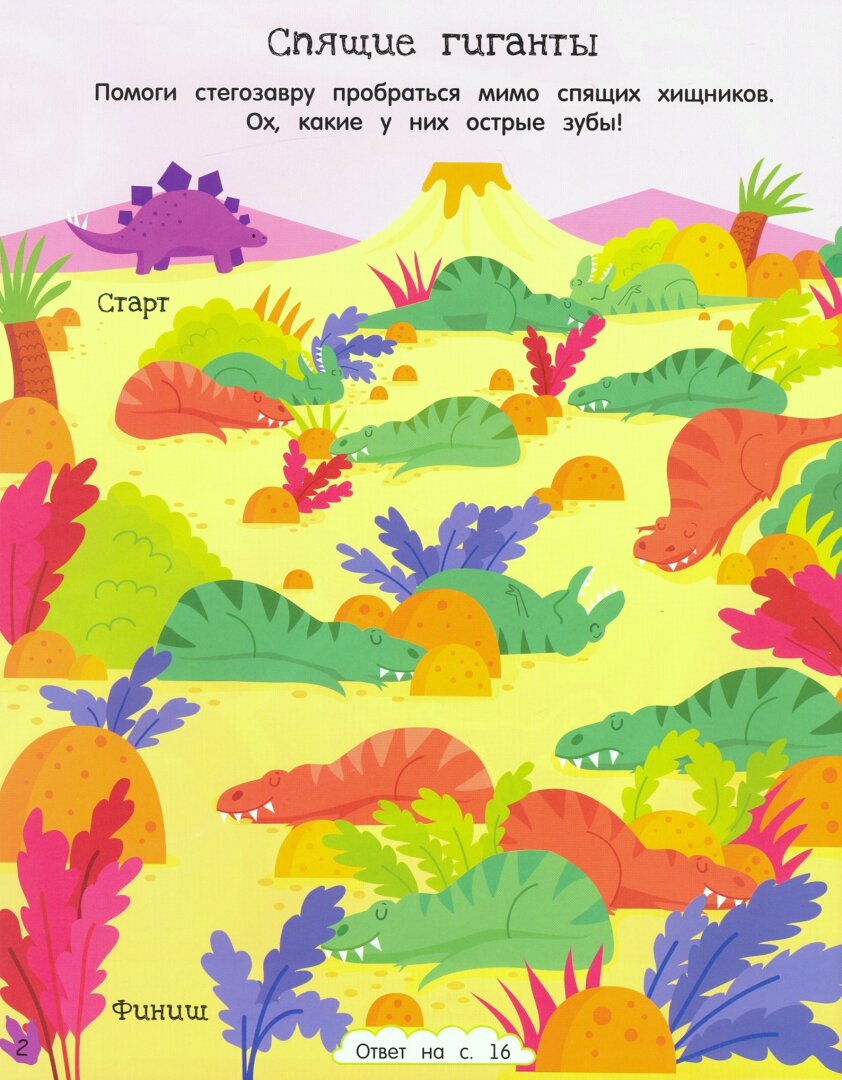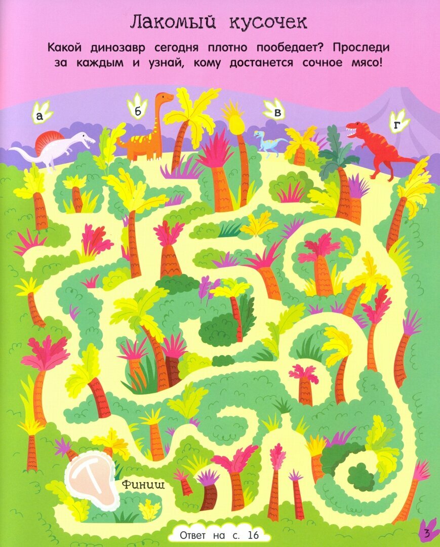 Зубастые тираннозавры, гигантские диплодоки, юркие птеродактили... В этой книге тебя ждут запутанные лабиринты, множество наклеек и награда за выполненные задания - собственный стегозавр!