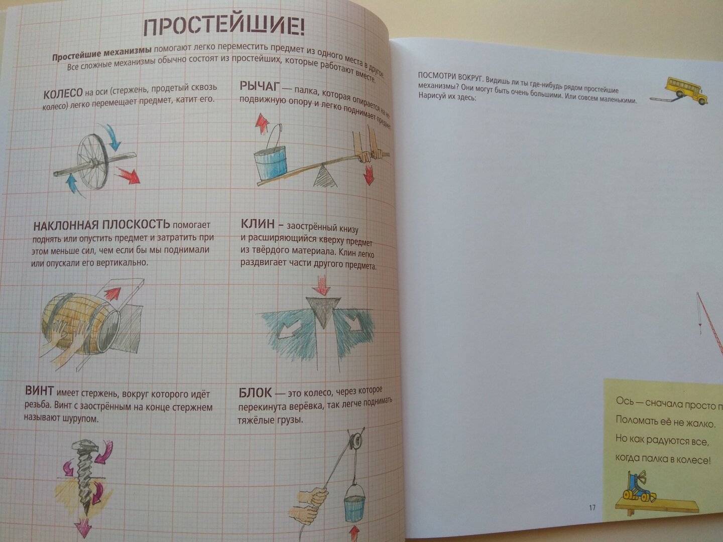 С этой (большой!) книгой проектов и вместе с Розой Риверой (которая очень хочет стать инженером!) надо придумывать решение проблем (серьезных и смешных), устраивать мозговой штурм и набрасывать идею за идеей, рисовать свои изобретения, строить (простые и сложные) механизмы и сооружения и не бояться ошибок!