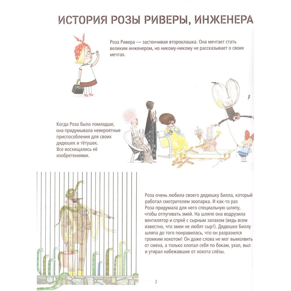 А если ребенок любит мастерить, придумывает разные изобретения, то, присоединившись к Розе Ривере, он узнает, кто такой инженер, как устроена его работа, как работать над проектом. И научится пытаться сделать, все перечеркивать, когда не получилось, и пытаться сделать еще раз, и еще раз, и еще раз!