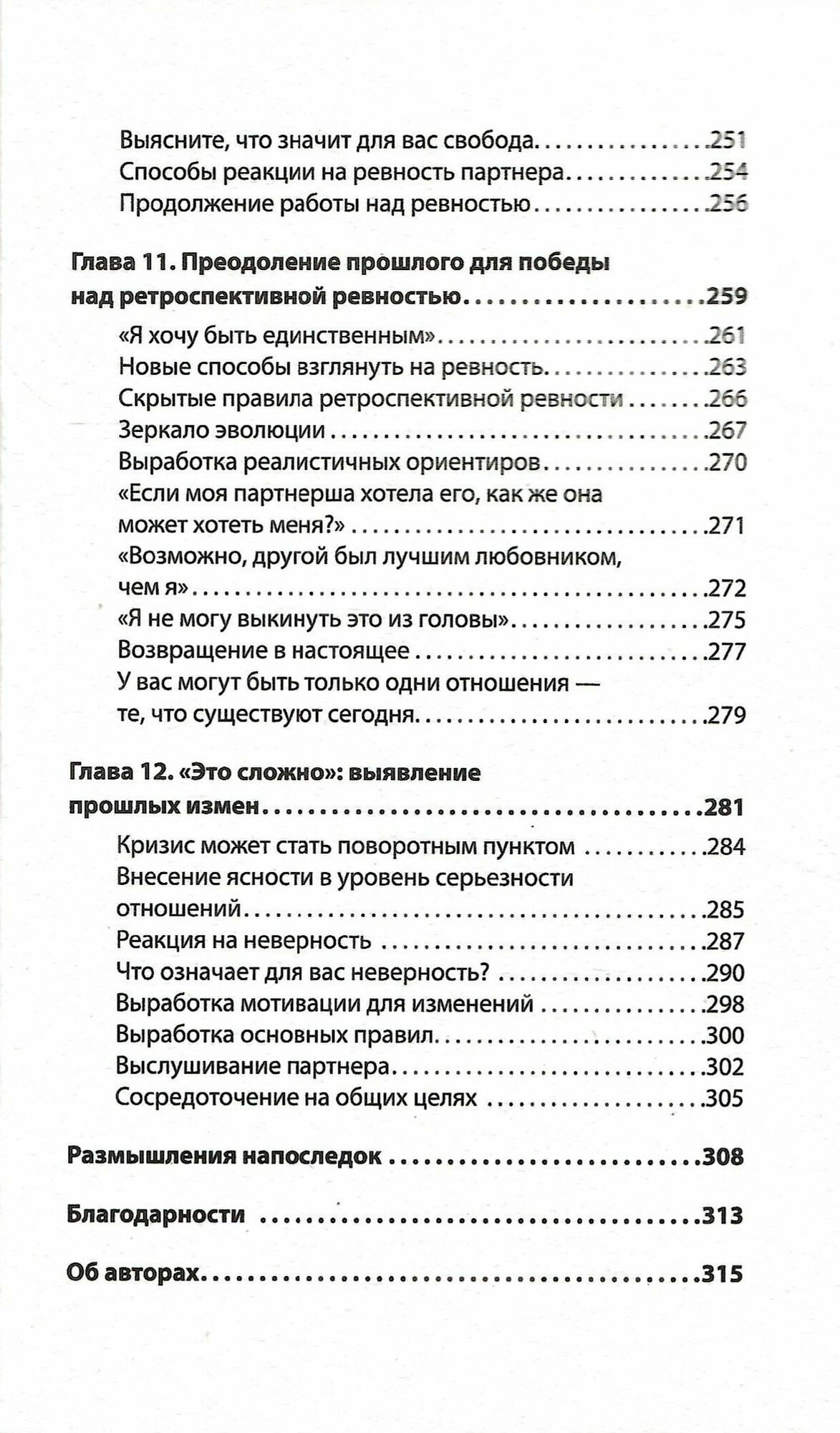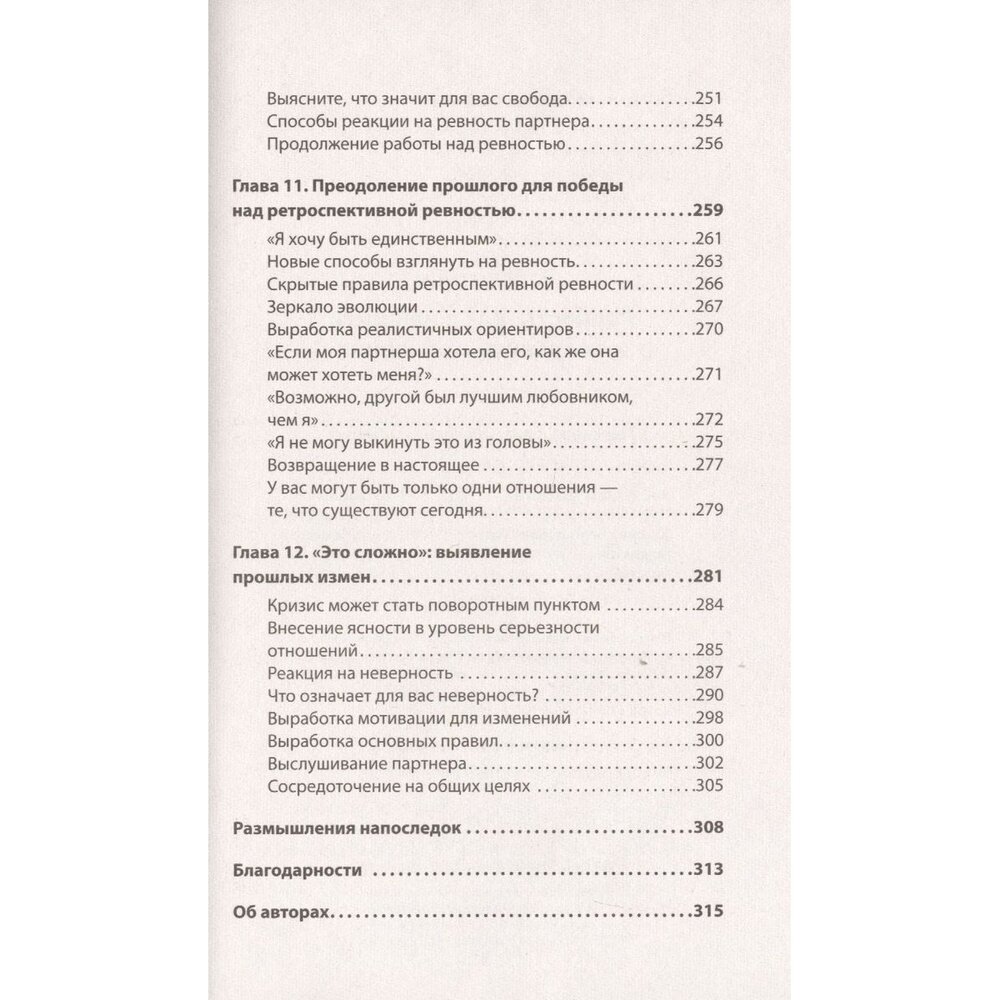 Книга просто потрясающая, я даже не думала, что она может быть настолько полезна! Книга о различных проявлениях ревность (если в Вашей паре существует недоверие из-за прошлых измен, например, либо Вы ревнуете партнера к прошлым отношениям). Книга будет полезна и тем кого ревнуют и тем кто ревнует. В книге есть ряд практик и советов по уменьшению ревности. Написано интересно, увлекательно, простым языком.