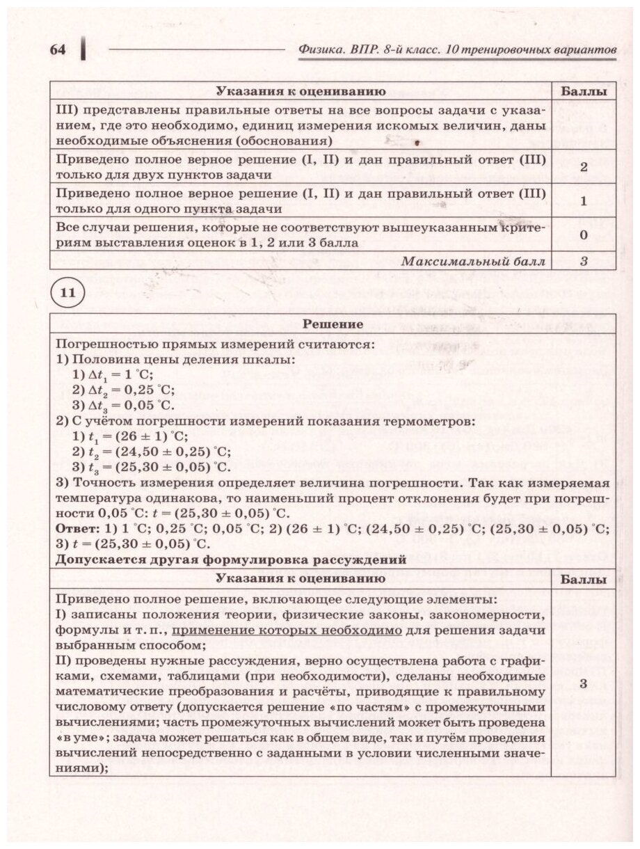 - 10 авторских тренировочных вариантов, составленных по образцу и плану ВПР, опубликованным на сайте Федерального института оценки качества образования каждый вариант работы состоит из 11 заданий, которые охватывают все основные темы курса физики 8-го класса;