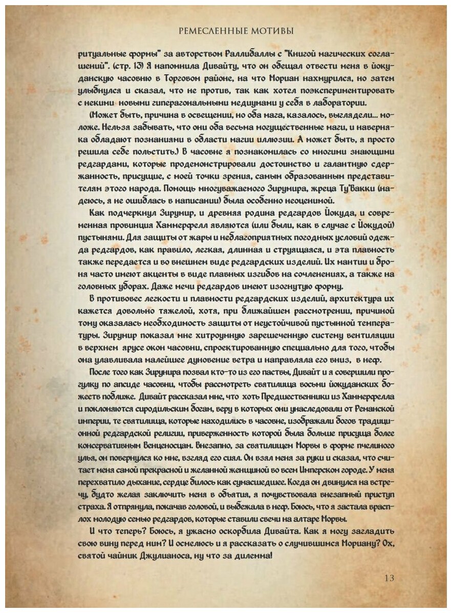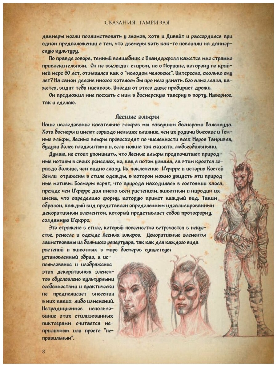 Книга визуально красивая, приятно держать в руках! Когда открываешь книгу погружаешься в атмосферу чего-то старинного, на столько проработано оформление страниц, но...ох если бы не это НО...ошибки, слишком часто были орфографические ошибки :( Очень обидно, т.к. ждешь качественного товара и цена за нее не маленькая.В первой книге "Сказания Тамриэля Земли" тоже самое :(