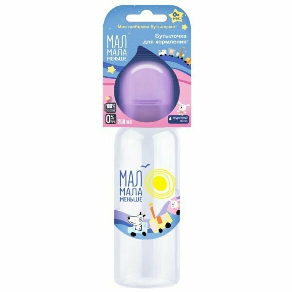Бутылочка "Мал Мала Меньше" предназначена для малышей от 0 месяцев. Удобная соска с медленным потоком изготовлена из силикона. Благодаря ручкам малыш легко научится держать бутылочку самостоятельно. Нестираемая рельефная шкала с удобным шагом помогает контролировать объем жидкости.Бутылочку можно использовать в микроволновой печи, подогревателе и посудомоечной машине.Удобно мыть, сушить и собирать.Бутылочка изготовлена из безопасного пластика - полипропилена, не содержит бисфенол А.