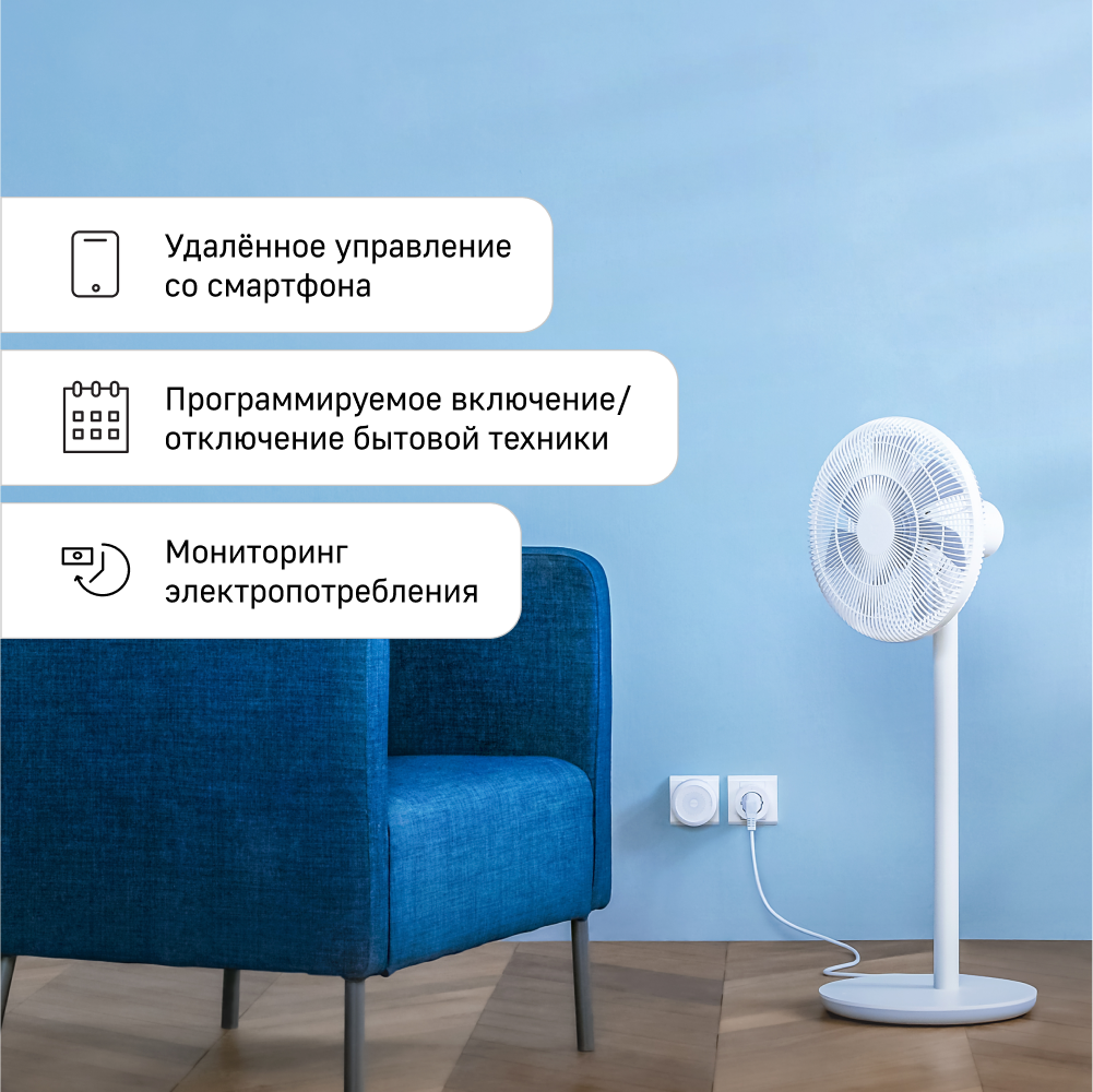обычные электроприборы в экосистему «умного дома». Она работает в сети 220 В и подает или отключает питание подсоединенной техники, параллельно проводя мониторинг силы тока и напряжения в сети.