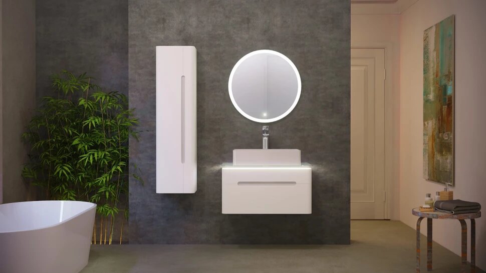 Зеркало Jorno Shine 65 Shi.02.65/W. Зеркало со светодиодной подсветкой и диммирующим сенсорным включателем. Круглое зеркало придает легкость композиции комплекта.