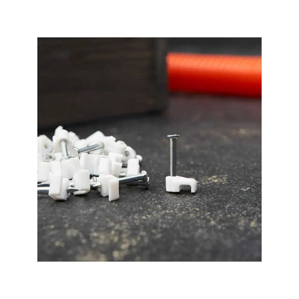 Высококачественный плоский крепеж кабеля REXANT представляет собой П-образную пластиковую скобу, выполненную из качественного пластика и идущую в комплектации с гвоздём из закаленного металла, при помощи которого данная скоба крепит к стенам, потолкам и несущим конструкциям кабели, провода.Размеры скобы (высота/ширина): 2х4 ммСкоба предназначена для плоского кабеля.