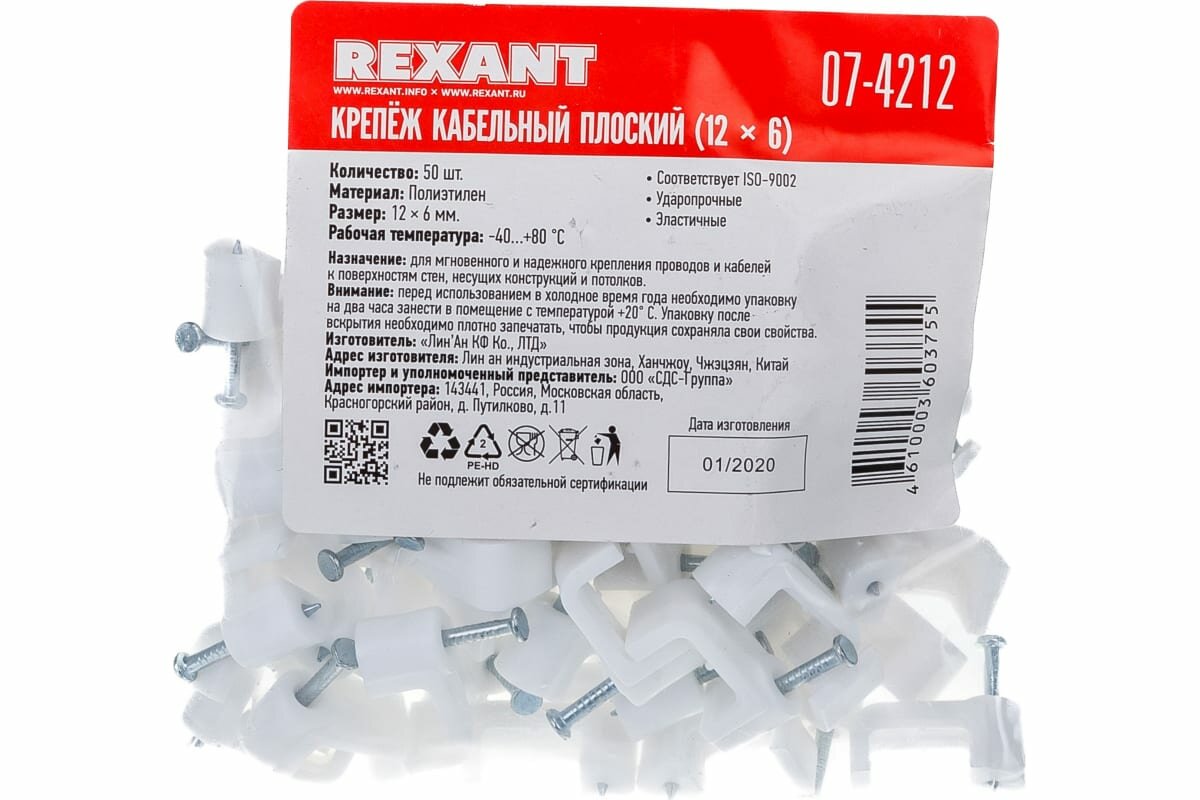 Плоский крепеж кабеля REXANT 07-4212