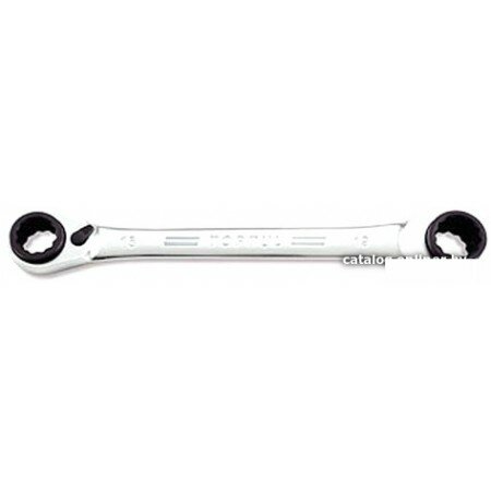 Ключ накидной 4 в 1 TOPTUL имеет двойные окончания, одно из которых подходит для болтов размером 8 и 11 мм, а второе - для болтов размером 9 и 10 мм. Ключ может применяться как трещотка. Механизм храповика имеет переключатель и способен работать как на зажим, так и на отворот.