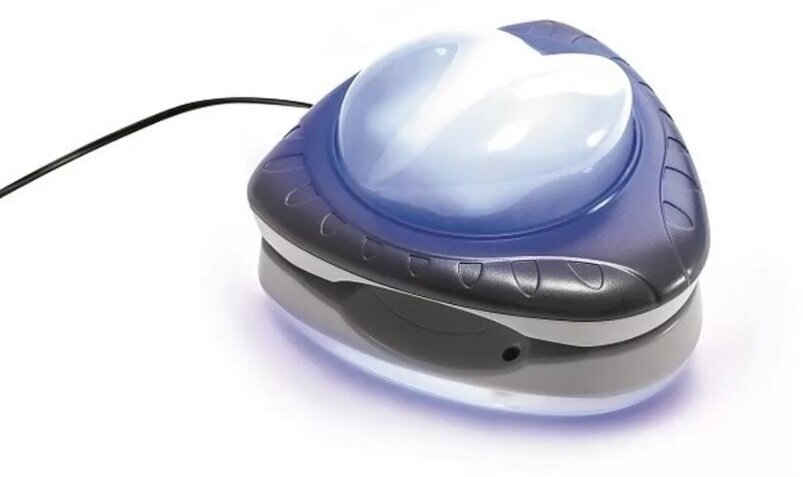 Классная штука для купаний в тёмное время. У нас бассейн 5*10, подсветки хватает. Но не прям, что бы везде было светло, на углах, конечно, не так ярко, но плавать приятно. Подсветка состоит из двух частей и крепится на стенку бассейна с помощью магнитов. Два режима: просто белый свет и переливающийся цветной. Управление с наружний стороны двумя кнопками. Конечно не на каждый день, но если купаться вечером, то штука классная!