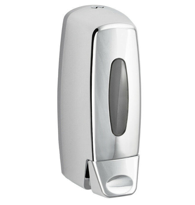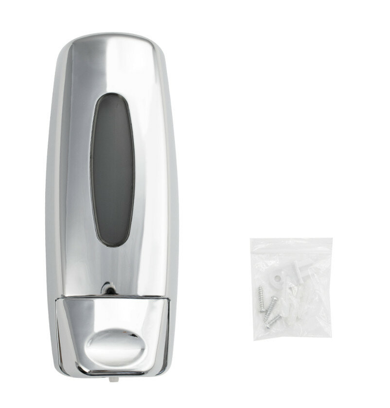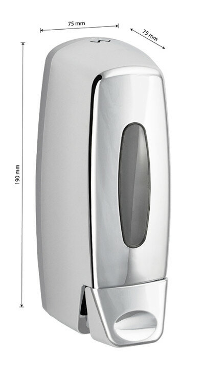 Механический дозатор для жидкого мыла, хромированный, предназначен для установки в любых санитарно-гигиенических комнатах. Имеет ключ и пластиковый замок. Дозатор прост в эксплуатации, достаточно нажать на кнопку для получения порции средства. Для удобства контроля за уровнем мыла на лицевой поверхности есть смотровое окно. Корпус диспенсера изготовлен из прочного пластика АБС хромированный, который выдерживает различные механическое воздействие. В резервуар емкостью 400 мл можно заливать как жидкое мыло, так и прочие средства. Разместив диспенсер на стене, достаточно время от времени проверять заполненность резервуара. Иного ухода он не требует, не нуждается в замене батареек. Это отличное решение как для частных владений, так и для гостиниц, кафе, столовых и прочих общественных мест. Габаритные размеры: высота 190 мм, ширина 75 мм, глубина 75 мм.