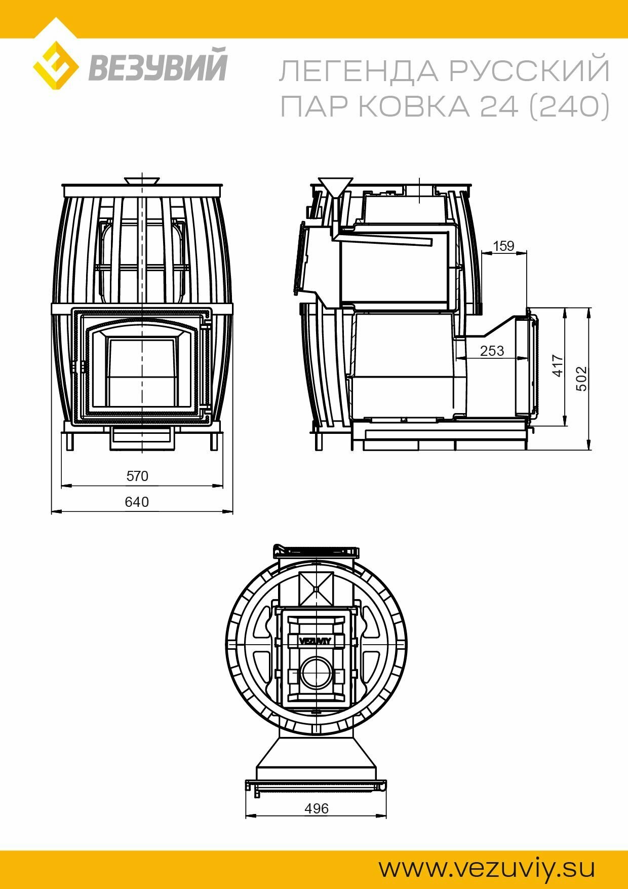Печь-каменка Везувий Легенда Русский Пар Ковка 24 (240)