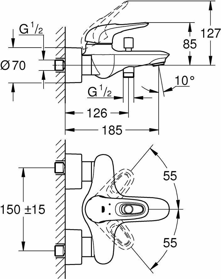 - Baterie baie pentru cada si dus Grohe Eurostyle 33591LS3